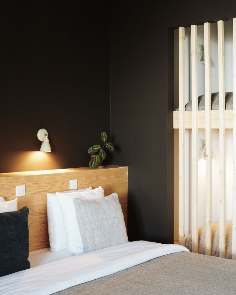 Nous avons donc conçu une chambre témoin qui nous a par la suite permis de la décliner en fonction des différentes dispositions. Tout le mobilier intégré a été dessiné et réalisé et l’ensemble des matériaux ont été choisi afin de créer une atmosphère calme et relaxante.